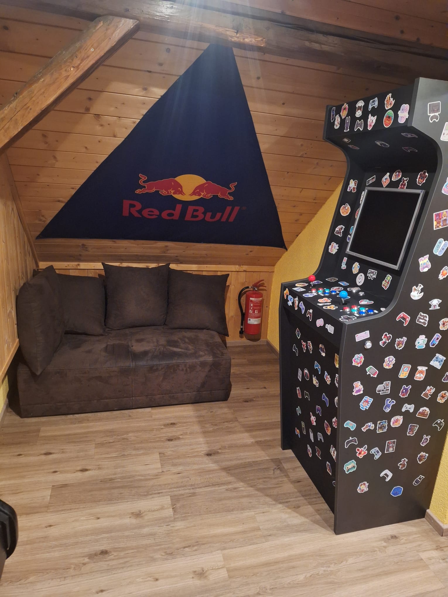 ...ausgestattet mit einem Fernseher, Playstation und allem was dazu gehört...