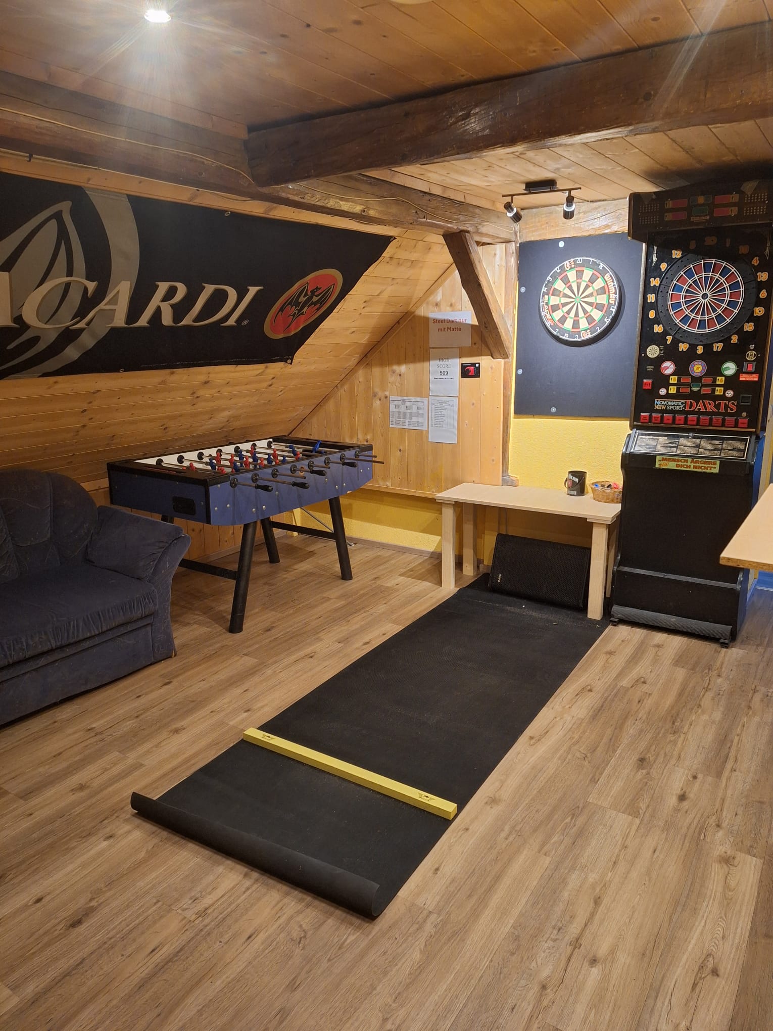 Ausgestattet mit Steeldart, Dartautomat und einem Wuzzler...